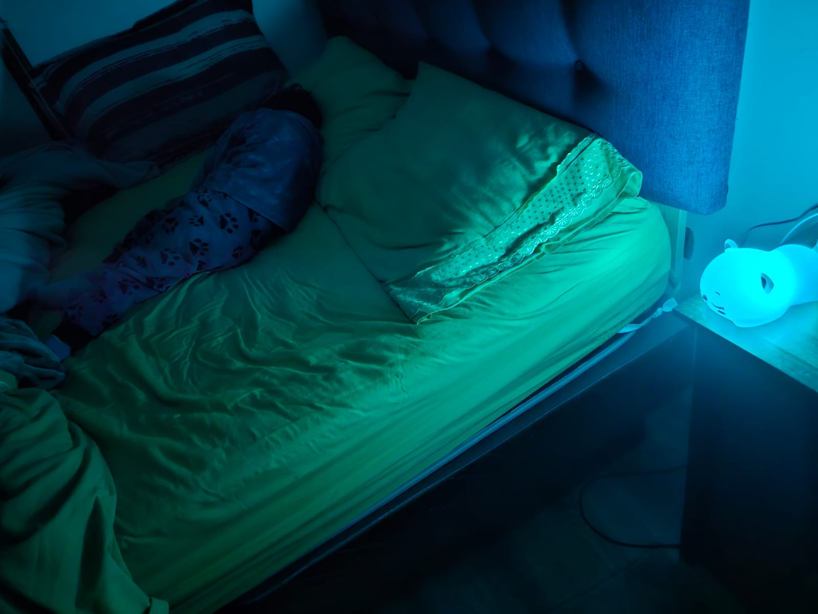 Mi hijo tenía miedo de la oscuridad y se despertaba asustado.Usamos luces de noche comunes, pero lo mantenían despierto en lugar de calmarlo.Me hablaron del espantacuco y me pareció una gran opción.Ahora se siente seguro y duerme sin interrupciones.