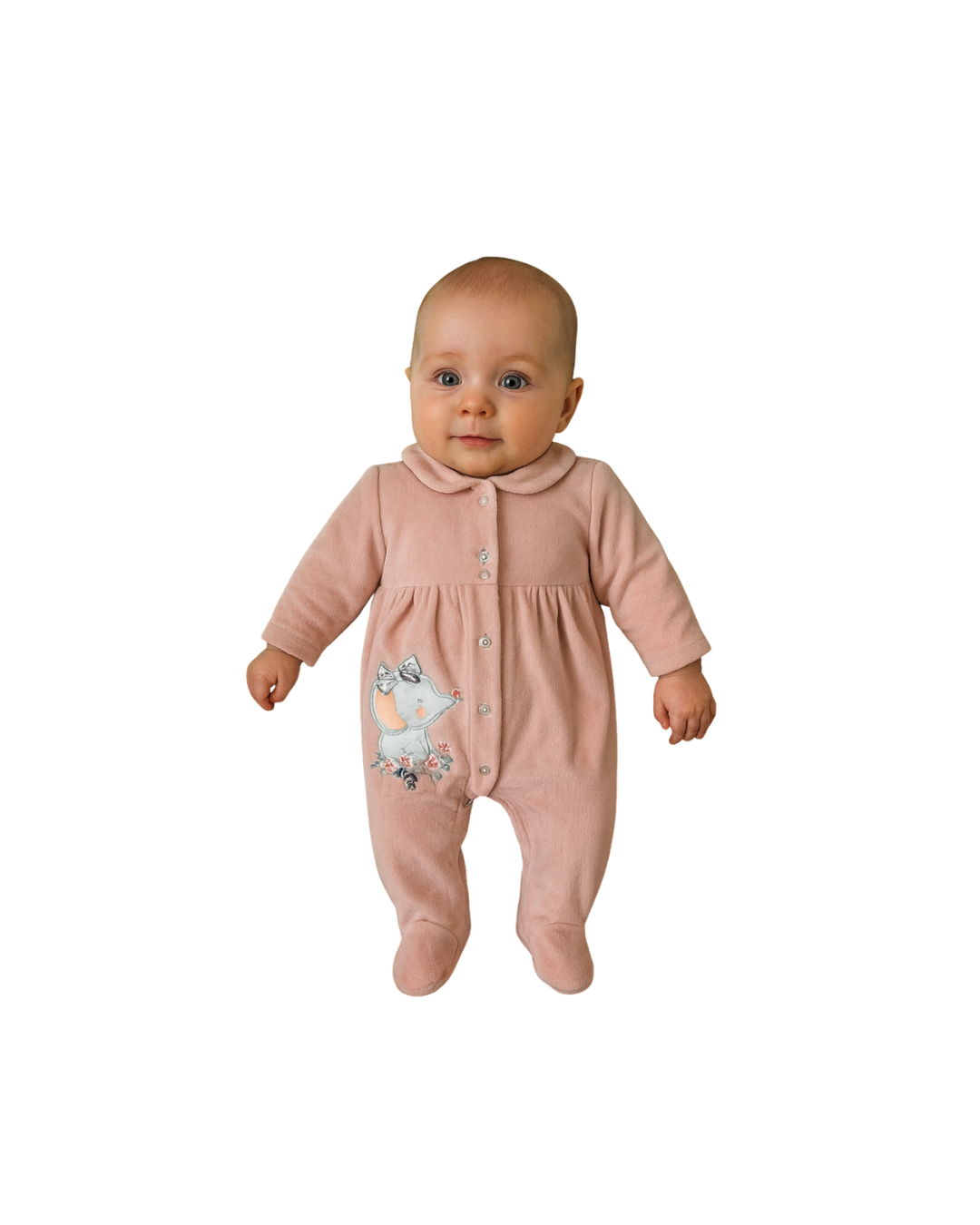 Este enterito en un suave tono rosa claro, decorado con un tierno elefante 🐘, de la marca Tedmimak, es perfecto para brindar comodidad y estilo a tu bebé. Confeccionado en algodón suave y transpirable, es ideal para cuidar la piel delicada de los pequeños.