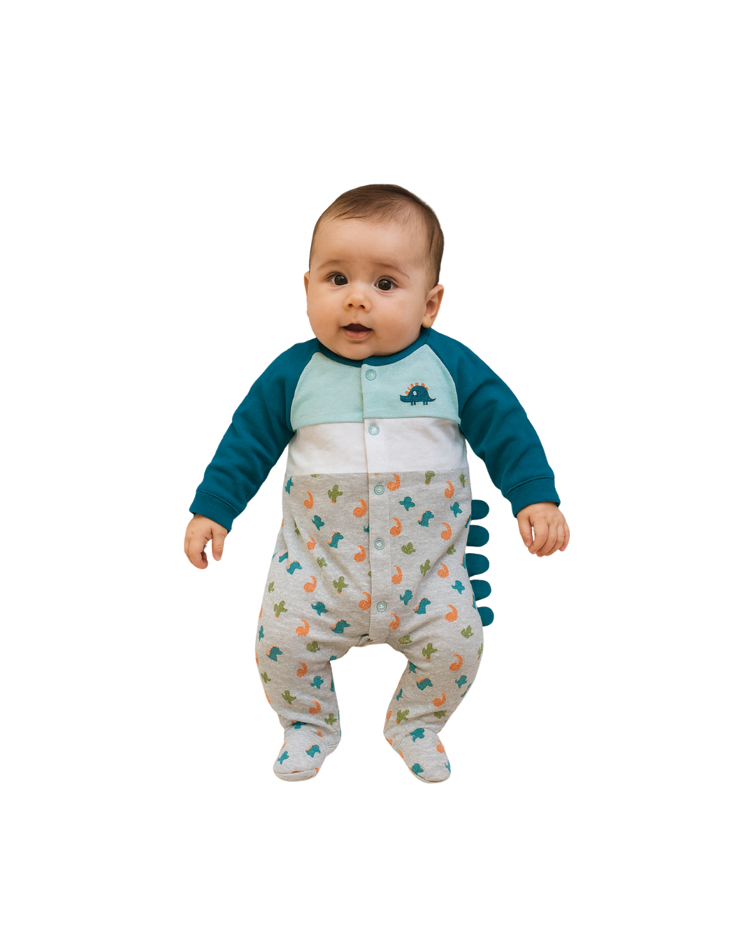 Este enterito de algodón suave y transpirable es perfecto para la comodidad diaria de tu bebé, decorado con un divertido estampado de dinosaurio que le dará un toque único y juguetón. 🦖