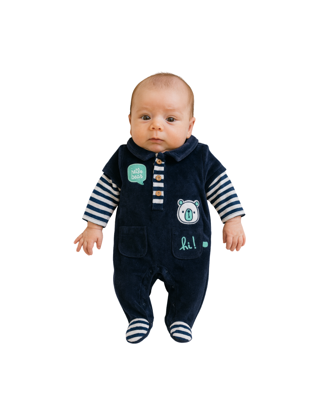 Suave, abrigadito y perfecto para tu bebé. Este enterito de plush azul es ideal para mantener a tu bebé cómodo y calentito. 🥰 Está hecho de algodón suave, con broches al frente para que sea fácil de poner y sacar (¡adiós peleas al mudar!). Además, tiene un tierno diseño de osito que lo hace aún más especial. 💕